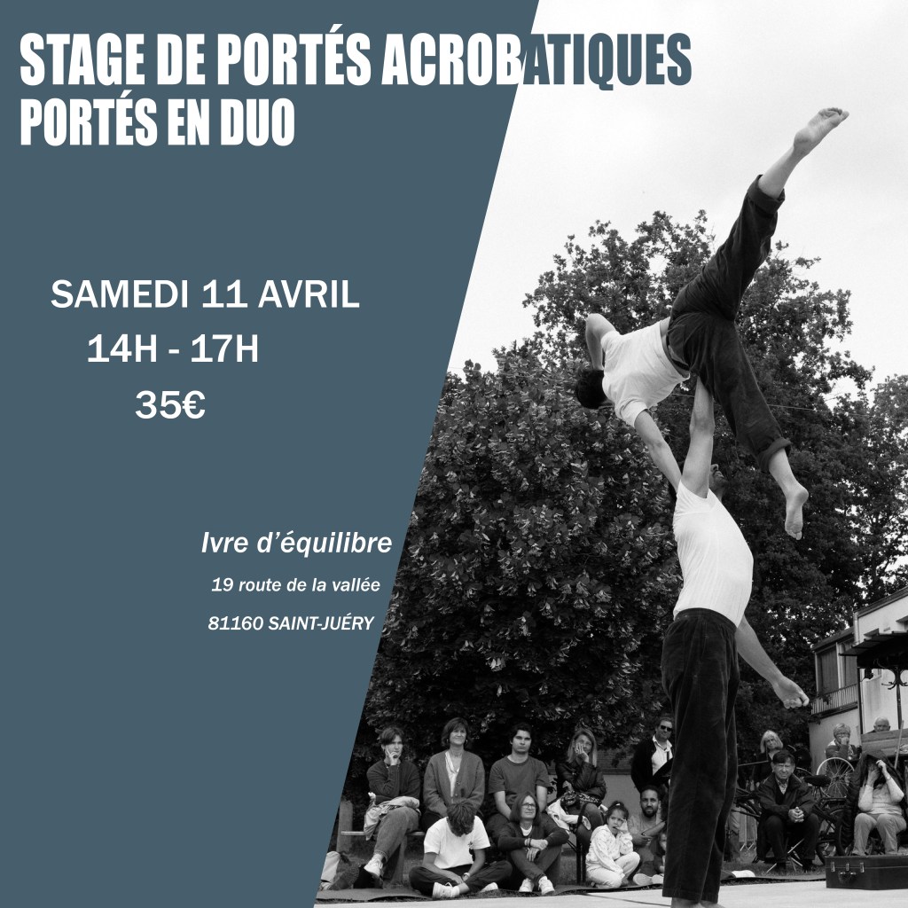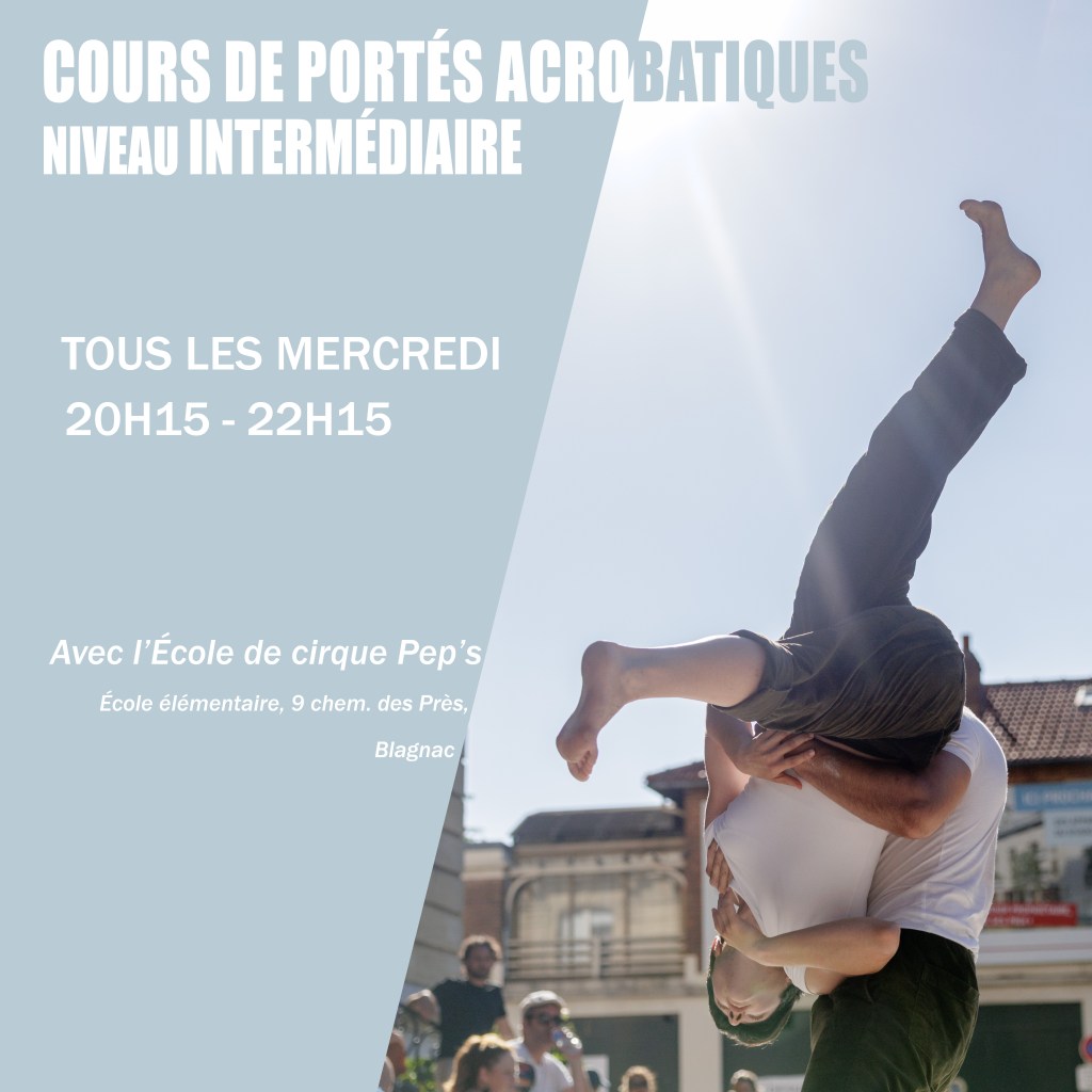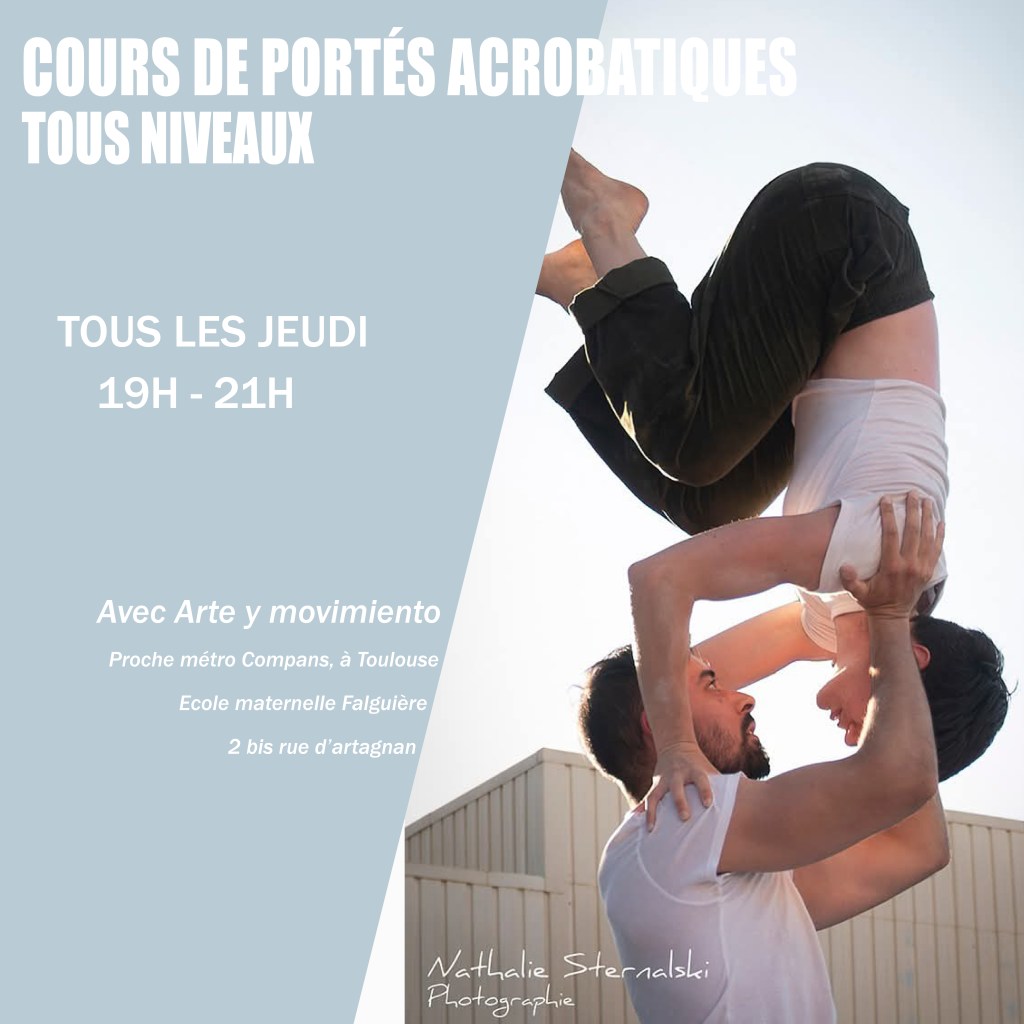 Les portés acrobatiques avec nous, c’est un joyeux mélange entre portés collectifs et portés en duo, entre danse et cirque, entre partnering et acrodanse, entre main-à-main et mouvement dansé !A Toulouse, nous proposons des cours intermédiaires (qui s’adresse à toute personne ayant envie d’approfondir la discipline. Il est donc recommandé d’avoir quelques années de pratique corporelle (cirque, danse…)), ainsi que des cours tous niveaux (qui s’adresse à toute personne ayant envie de découvrir la discipline ou de consolider ses bases.)